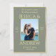 Belle, double face, moderne, tendance élégante invitation d'anniversaire mariage photo. Avec un joli arrière - plan de couleur sage avec une bordure dorée brillante...des couleurs sophistiquées et à la mode convenant à toute saison. Design mariage unique dans les couleurs romantiques de la sauge et de l'or. Il vous suffit de modifier l'exemple de photo pour créer votre propre invitation personnelle unique pour votre journée spéciale. Tout le texte, la police et la couleur de police sont entièrement personnalisables pour répondre à vos besoins. QR-CODE peut être appliqué pour des informations supplémentaires. Si vous souhaitez aider à personnaliser/customiser votre produit, veuillez me contacter par l'intermédiaire de mon magasin et je serai très heureux de vous aider. Beau design mariage chic, classe et élégant.