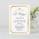 Faire-part de mariage moderne design noir et blanc avec une police manuscrite élégante avec des boucles et un monogramme de la mariée et du marié. Invitation classique et élégante, simple et moderne.