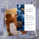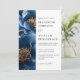 Cette élégante faire-part de mariage florale bleu marine et or peut être personnalisée avec vos informations dans la typographie moderne et une photo spéciale au verso. Conçu par Thisisnotme©