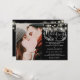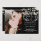 Un faire-part de mariage noir et blanc avec de jolies lampes à cordes et une délicate guirlande florale rustique dessinée à la main de feuillage de feuilles botaniques avec typographie stylisée. Conçu par Thisisnotme©
