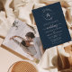 Invitation Mariage photo Floral Wreath Navy Blue Monogram