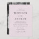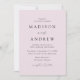 Faire-part de mariage minimaliste et moderne avec vos détails mariages en lettrage noir avec accents de script de calligraphie avec un arrière - plan lavande violet. L'arrière du faire-part de mariage branché affiche votre photo de fiançailles vertical. Conçu pour coordonner avec notre collection de mariages Modern Elegance.