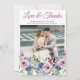 carte de remerciements photo mariage, amour et merci, avec bleu marine et vin prum bordeaux design floral, jolies fleurs avec script élégant. Nom, date et information de la Personnaliser.