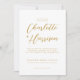 Un faire-part de mariage de typographie or minimaliste, écrit à la main et simple, avec votre photo mariage à l'arrière. Remplacez l'échantillon de photo par votre propre photo mariage posée. Utilisez l'outil de conception simple pour modifier votre police ou votre couleur de type. Disponible en version imprimée, en téléchargement numérique ou les deux.
