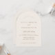 Cette invitation présente une forme d'arche moderne avec une touche rustique boho. Elle comporte un beau cadre photo de champ d'un côté et un texte personnalisable de l'autre. Ce modèle élégant permet aux couples d'ajouter facilement leurs noms, date, lieu et une photo personnelle. La personnalisation maximale facilite la personnalisation pour tout mariage de style rustique, moderne ou bohème.