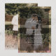 Cette élégante invitation de mariage présente un texte de calligraphie script qui balaie associé à une police serif classique et une police sans serif moderne en blanc, avec une superposition de photo sur le devant et une deuxième photo au dos avec un monogramme personnalisable. Articles assortis disponibles.