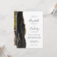 Le bord gauche de cette élégante faire-part de mariage moderne est orné d'une bordure en aquarelle noire ornée d'une parties scintillant en faux or. Le texte personnalisable combine écriture manuscrite, copperplate et polices italiques en gris fusain sur un arrière - plan blanc. Remplacez facilement l'exemple d'image au dos par une photo du couple.