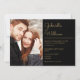 Faire-part de mariage de script moderne avec vos photos spéciales et détails de célébration mis en typographie or sur un arrière - plan noir. Conçu par Thisisnotme©