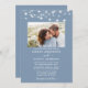 Moderne Elégant minimaliste Dusty Bleu et Blanc Faire-part de mariage. Éclairage à cordes. Photo Couple.