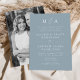 Invitation Mariage photo moderne Elegant Dusty Blue Monogram