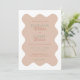 Cette belle faire-part de mariage est encadrée par une délicate bordure de pétoncle à vagues. Il dispose d'une palette paisible aux tons apaisants de terre cuite, complétée par des verts doux et des tons terreux. Les fontes ludiques mais sophistiquées dansent à travers la page, mélangeant le fantaisie avec l'élégance, et des mots sélectionnés soulignés dans le vert sauge profond ajoutent une délicieuse pop de couleur. Plus qu'une simple invitation, c'est un prélude à une fête pleine de charme et de joie, parfaitement adapté aux couples à la recherche d'un mélange de plaisir et de sophistication dans un design qui parle doucement de la nature et de l'amour.