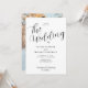 Elégante, simple, minimaliste faire-part de mariage noir et blanc avec photo fiançailles personnalisée et un script de calligraphie chic et audacieux.