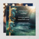 Faire-part de mariage avec deux hippocampes artistiques sur une corde nautique avec noeud dans un monde sous-marin ensoleillé. Au dos se trouve votre photo personnalisée. Belle pour un mariage côtier ou aquarium.