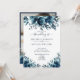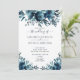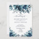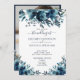 Cette faire-part de mariage d'aquarelle fleurie romantique et rustique présente une goutte de fleurs, avec un texte d'invitation de style moderne et rustique avec typographie manuscrite. Au fond de l'invitation, vous trouverez votre photo fiançailles préférée, derrière un cadre bleu marine et des fleurs bleues. Copyright Invitations élégants, tous droits réservés.