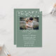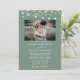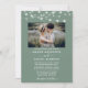 Moderne Elégant minimaliste Sage vert et blanc Faire-part de mariage. Éclairage à cordes. Photo Couple.
