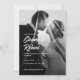 Cette élégante invitation de mariage comporte un texte de calligraphie de script, avec une photo superposée sur le devant et une deuxième photo sur le dos avec un monogramme personnalisable. Éléments correspondants disponibles.