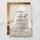 Faites de votre mariage un inoubliable avec notre invitation moderne ! Il combine un script élégant avec des polices serif et sans-serif élégantes en noir. L'avant présente les détails de votre mariage sur une photo personnalisée avec une couverture blanche, tandis que l'arrière offre de l'espace pour une autre photo de votre choix, rendant chaque invitation unique.
