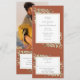 Une invitation de mariage tout-en-un avec des feuilles de verdure botaniques élégantes aquarelles sur un fond de terre cuite et une bordure chic dorée. L'invitation comprend une carte de réponse qui peut être détachée et votre photo spéciale au verso. Conçue par Thisisnotme