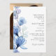 Cet élégant faire-part de mariage floral bleu poussiéreux peut être personnalisé avec vos informations en typographie chic avec votre photo spéciale au verso. Conçu par Thisisnotme©