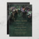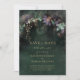 Illustration de branches d'arbres avec végétation luxuriante et feuillage suspendu, sur un arrière - plan vert chasseur foncé, décorent cette décoration cet été automne ou mariage d'hiver sauf l'invitation de la date avec un thème de forêt enchanté. Un mariage élégant et moderne garde la date pour un conte de fées. Parfait pour les épouses qui aiment le cadre de la forêt de conte de fées, le thème de la forêt de fées ou de jardin de fées et vert émeraude ou vert chasseur ou autres nuances de vert pour leur mariage.