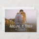 Invitation vos invités avec élégance et charme avec notre faire-part de mariage. Les noms du couple sont affichés dans une police de serif décorative et soignée, superposant votre belle photo. Parfait pour une touche de sophistication lors de votre journée spéciale.