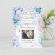 Cartes de fiançailles - Frais et pleines de l'été - Dessin de pivoines à l'aquarelle et au pastel dans des tons bleu ciel et rose bubble-gum avec une touche d'améthyste violet. Conception de la Suite de Mariage par WhimsicalArtwork™. Cela fait partie d'une Suite de Papeterie de Mariage complète avec des invitations de mariage, de baby shower et d'autres événements correspondantes.