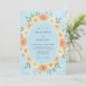 Cette création présente un fond bleu clair doux orné d'un arrangement luxuriant de roses pêche aquarelles et de fleurs sauvages jaunes ensoleillées. Le feuillage vert luxuriant et les brindilles délicates se faufilent à travers l'étalage floral pour créer une atmosphère lumineuse et aérée. La palette de couleurs de bleu pastel, d'orange chaud et d'or évoque une humeur printanière joyeuse.