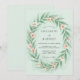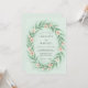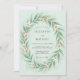 Cette création présente un fond vert menthe doux orné d'une délicate couronne de feuilles verdoyantes et de fleurs de pêcher pâles. L'esthétique aquarelle éthérée crée une ambiance romantique et sereine, parfaite pour un événement printanier en plein air. La palette se concentre sur des tons pastel et des éléments botaniques naturels pour évoquer une élégance gracieuse.