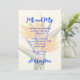 Annonce un mariage qui a eu lieu lors d'une cérémonie privée. Les fleurs d'oiseau de paradis servent de fond à un texte bleu vif personnalisé qui annonce une fugue amoureuse, ou un petit mariage, et invite la famille et les amis à une réception de célébration pour le jeune couple.