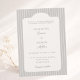 Célébrez votre jour de mariage avec cette élégante invitation de mariage rayée, mettant en vedette un intemporel fond de couleur argent chaud, étain, associé à des rayures d'ivoire chaud et doux. La mise en page propre et classique crée un look raffiné qui se sent à la fois moderne et traditionnel, ce qui en fait un choix parfait pour les couples qui aiment l'élégance discrète.