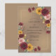 Une palette profonde de fleurs bordeaux et jaune moutarde décore les coins de ce design. De riches dahlias et roses sont superposés avec un feuillage vert sur un fond chaud et tanné. Cette esthétique capture l'essence d'une atmosphère automnale cosy avec ses éléments floraux terreux et sophistiqués.