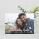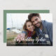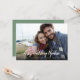 Annoncez votre mariage reporté avec cette carte photo moderne. Elle comporte un cadre photo horizontal qui remplit toute la face avant de la carte. Le design est accentué avec un texte de style manuscrit qui indique : Mise à jour de notre mariage. Le verso est vert sauge avec un motif à points et propose un texte personnalisé pour plus de détails.