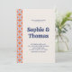 Entrez dans une capsule temporelle de nostalgie chic avec notre faire-part de mariage moderne du milieu du siècle. Conçu pour vous transporter dans les années 60 glamour, cette invitation est un mélange harmonieux de sophistication vintage et de style contemporain. L'avant de l'invitation est orné d'un motif classique, aux couleurs audacieuses et contrastées qui préparent le terrain à une célébration sans pareil. Ajoutez vos propres détails en cliquant sur l'option "personnaliser". Au verso de la carte, vous pouvez ajouter votre propre image de code QR ou en générer une à l'aide des outils de personnalisation de Zazzle ou supprimer et remplacer le texte.