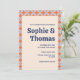 Entrez dans une capsule temporelle de nostalgie chic avec notre faire-part de mariage Mod Elegance. Conçu pour vous transporter dans les années 60 glamour, cette invitation est un mélange harmonieux de sophistication vintage et de style contemporain. L'avant de l'invitation est orné d'un motif classique, aux couleurs audacieuses et contrastées qui préparent le terrain à une célébration sans pareil. Ajoutez vos propres détails en cliquant sur l'option "personnaliser". Au verso de la carte, vous pouvez ajouter votre propre image de code QR ou en générer une à l'aide des outils de personnalisation de Zazzle ou supprimer et remplacer le texte.