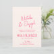 Cette invitation de mariage est parfaite pour votre mariage si vous cherchez une invitation élégante, unique et facile à modifier. Une invitation de mariage élégante, unique, simple et minimaliste rose, tout-en-un. Qui présente un fond rose clair uni. Et les prénoms de la mariée et du marié écrits à la main dans une police fantaisiste rose élégante. Et des informations facilement modifiables avec tous les détails du mariage tels que la réception, l'hôtel, la réponse et le site web du mariage. Abordable et c'est également une invitation électronique numérique si vous souhaitez l'envoyer par SMS ou par e-mail. Toutes les informations sont personnalisables en cliquant sur le bouton de personnalisation. Alors saisissez-la et faites-en vôtre pour que vos invités soient engagés et enthousiastes.