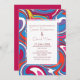 Un style rétro ondulé tournoie l'arrière - plan coloré. Couleurs rétro bleu vif et jaune rose. Design artistique unique pour la faire-part de mariage. Facilement modifiable pour votre texte personnel.