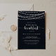 Cette invitation de réveil de mariage rustique avec guirlandes de lumières est parfaite pour une célébration moderne. Le design présente de belles guirlandes de lumières peintes à la main sur un fond bleu foncé.
