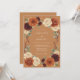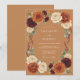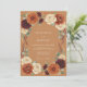 Une riche palette de terracotta, de bordeaux profond et d'ivoire crémeux définit ce design automnal romantique. Des arrangements floraux luxuriants mettant en vedette des dahlias et des roses s'entrelacent avec un feuillage délicat, créant une esthétique chaleureuse et enchanteresse. Cette œuvre évoque une sensation d'élégance rustique.