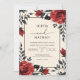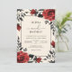 Des fleurs rouges riches et profondes, entrelacées de feuillage foncé, créent une esthétique dramatique et romantique. Ce design évoque une élégance vintage et un charme passionné. Un choix sophistiqué pour une occasion mémorable.
