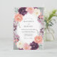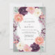 Une riche palette de prune profond, de pêche douce et de roses ivoire définit cet arrangement botanique. Des brindilles de feuillage de sauge et des pétales de lavande ajoutent de la profondeur et une esthétique romantique et sombre. La technique de l'aquarelle donne une texture douce et picturale aux fleurs luxuriantes. Ce design est un choix parfait pour un événement saisonnier sophistiqué.