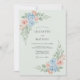 Invitation Mariage Romantique aux Fleurs Bleu Clair