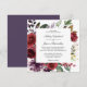 Une faire-part de mariage romantique à l'aquarelle fleurie avec une belle couleur mêlant le rouge bordeaux riche et le violet de prune mélangé avec une petite touche de blanc floral et de verdure luxuriante. Le dos de l'invitation est recouvert d'une couleur violet prune unie. Cette invitation est un beau choix de mi-été à l'hiver. Personnalisez le modèle de texte avec les détails de votre mariage.
