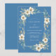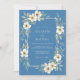 Un design à l'aquarelle doux présente de délicates fleurs de pervenche et une verdure luxuriante encerclant une mise en page raffinée. Cet arrangement artistique évoque une ambiance douce et romantique, parfaite pour une occasion spéciale. La palette est centrée autour de bleus sereins et de blancs crémeux avec des touches d'or mat.