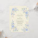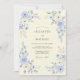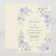 De délicates fleurs de pervenche et de crème forment une cascade gracieuse et picturale sur ce design. L'arrangement floral aérien évoque une atmosphère douce et romantique, parfaite pour une célébration intemporelle. Une verdure subtile ajoute de la profondeur au thème floral artistique et doux.
