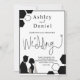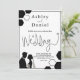 Cette élégante faire-part de mariage en noir et blanc conviendra parfaitement à une mariage moderne. Le design simple présente une élégante calligraphie noire, un cadre noir chic et une illustration de mariée et de mariée sur un arrière - plan blanc propre. La carte d'invitation comprend les détails du mariage au dos au lieu de payer une carte d'enceinte séparée.