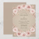 Une délicate couronne florale rose rougeat entoure le centre de ce design. Des roses douces et romantiques ainsi que le feuillage subtil créent une atmosphère élégante et tendre pour votre jour spécial. Ce design évoque un sentiment d'intimité douce.