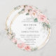 Invitation Mariage Rond Fleurs Rose Pâle et Feuillage Doré