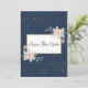 L'élégant mariage botanique enregistrer la date invitation design comprend des fleurs d'aquarelle à thème de pivoine rose sur un arrière - plan bleu marine plus un ensemble sophistiqué de polices. Voir le lien de collection sur cette page pour plus d'inspiration.
