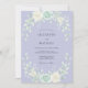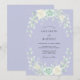 Cette création présente un fond lavande doux orné de délicates roses à l'aquarelle dans des tons de crème et de vert menthe. Un feuillage luxuriant et des brins d'eucalyptus créent une esthétique botanique romantique parfaite pour un événement printanier ou estival. La palette de couleurs éthérées de pourpre pastel et de sauge procure une ambiance sereine et sophistiquée.