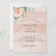 bois d'or rose comme arrière - plan. Décoré d'or rose et de fleurs roses rousses, de fleurs roses et de feuilles d'eucalyptus vert aquarellés, de sprigs, de verdure et d'une fausse feuille d'or. Personnalisez et ajoutez vos noms et les détails du mariage.
